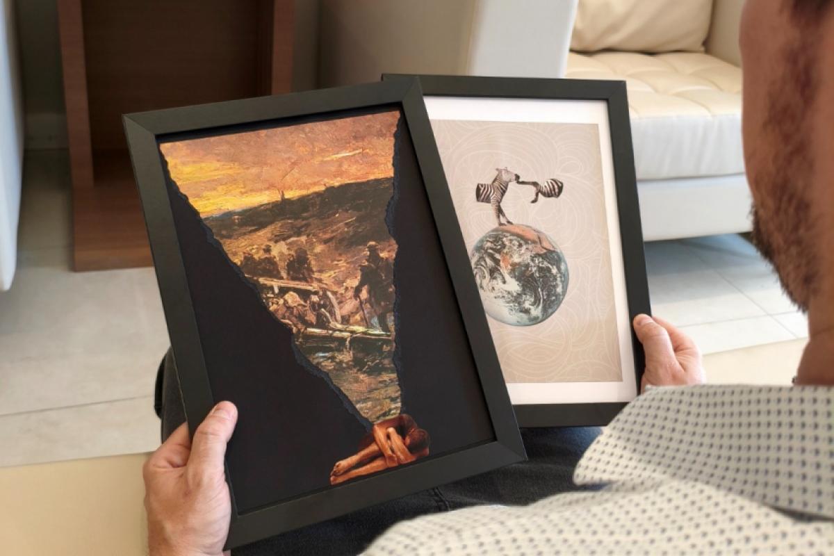 A exposição apresenta obras inéditas desenvolvidas a partir da colagem analógica - técnica que utiliza recortes de revistas, livros e fotografias para criar novas composições visuais. Ao reorganizar esses fragmentos, o artista propõe uma reflexão sobre a construção da identidade a partir de memórias, experiências e referências culturais.