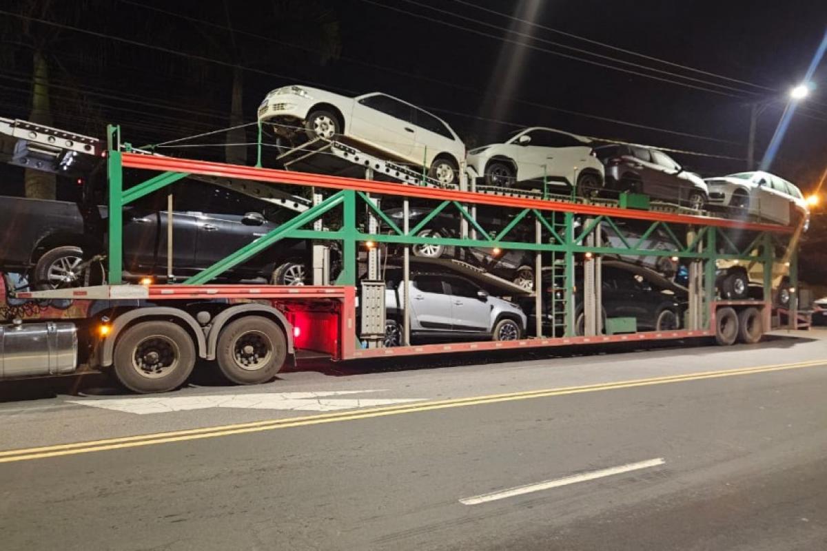 A Polícia Militar prendeu um homem e recuperou na madrugada desta quinta-feira (16) uma carreta cegonha roubada na rodovia Fernão Dias contendo onze carros e uma motocicleta. O flagrante ocorreu na avenida Humberto Cereser, em Jundiaí.
