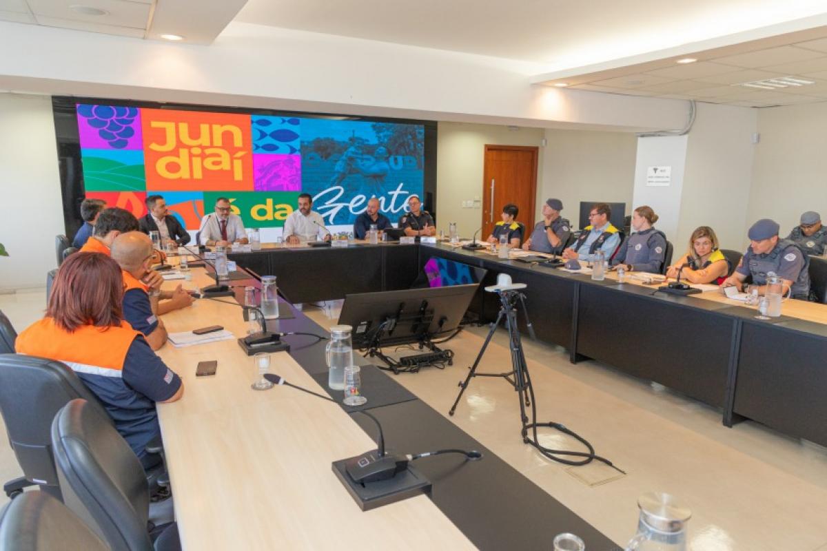 Também participaram da reunião o secretário municipal de Segurança Pública, Guilherme Balbino Rigo; a secretária municipal de Assistência e Desenvolvimento Social, Luciane Mosca; o secretário municipal de Infraestrutura e Serviços Públicos, Jeferson Coimbra; o subcomandante da Guarda Municipal, Dênis Berni; o capitão e comandante da 2ª Cia. Do 11° BPM/I, Renato Begalli Ribeiro; o capitão e comandante da 1ª Companhia do 49º BPM/I, Iuri Rocha; o assessor especial da Região Metropolitana de Jundiaí, Thales Delgado; e o coordenador do Gabinete de Gestão Integrada Municipal (GGIM), Adalberto Ceolin.
