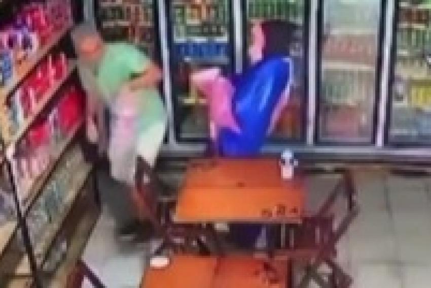 Em um vídeo divulgado nas redes sociais é possível ver o criminoso fingindo ser um cliente. Ele segura uma garrafa de água e dá passagem para um homem, que olha produtos nos fundos da loja. Quando o homem está distraído, ele atira nas costas da vítima e foge. A arma estava escondida dentro da fantasia.