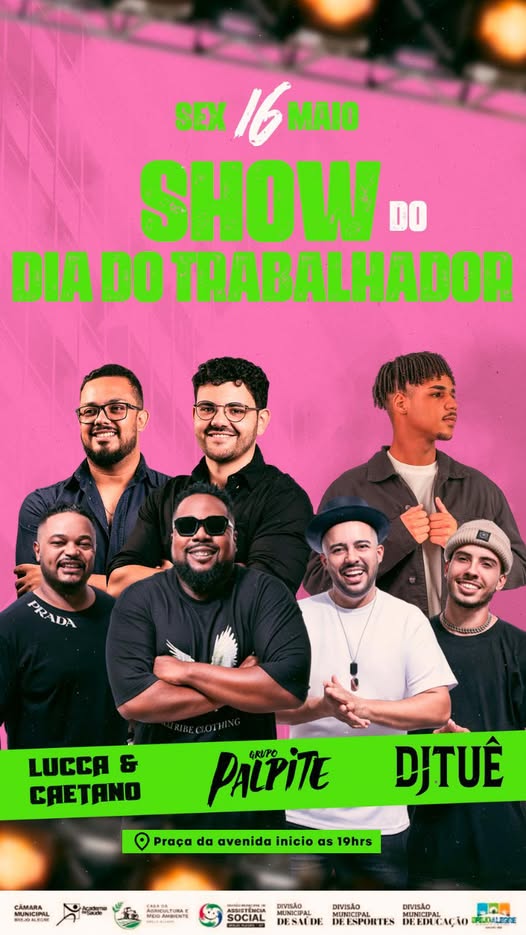 A cidade de Brejo Alegre realiza mais uma edição do projeto "Brejo Alegre em Movimento", nesta sexta-feira, 16, com uma programação especial em comemoração ao Dia do Trabalhador. O evento é gratuito e aberto ao público, reunindo shows musicais, apresentações culturais, sorteios de brindes e atividades voltadas para toda a comunidade.
