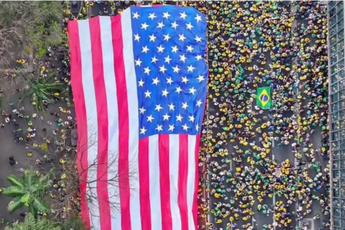 "A bandeira também foi uma mensagem para manifestantes de direita que protestavam contra a esperada condenação do ex-presidente Jair Bolsonaro, acusado de planejar um golpe, nesta semana, e seus apoiadores adotaram as estrelas e listras com especial entusiasmo", completa.