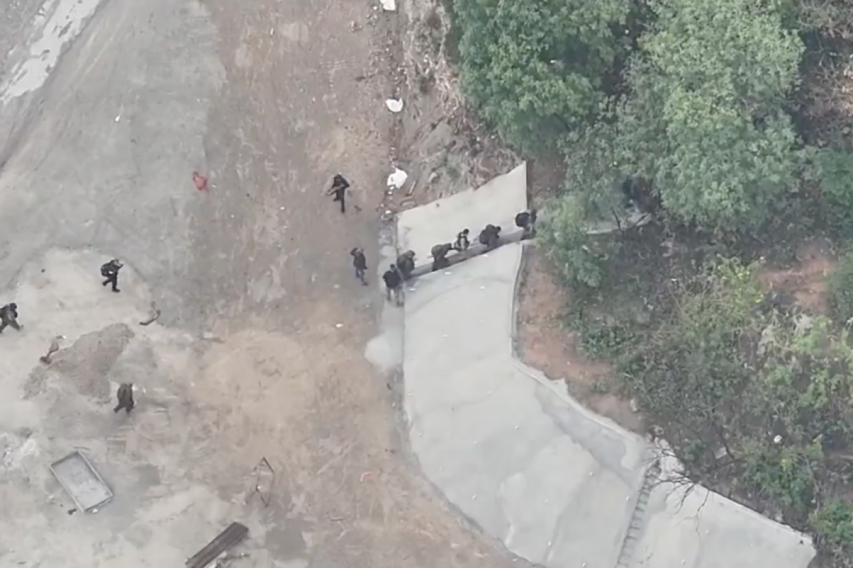 De acordo com a polícia, os vídeos registram inicialmente 23 traficantes reunidos, alguns com roupas camufladas e uniformes parecidos com os das forças policiais. Minutos depois, outros 83 criminosos aparecem fugindo para a mata da Serra da Misericórdia, área usada pelo Comando Vermelho como rota de fuga e campo de treinamento.