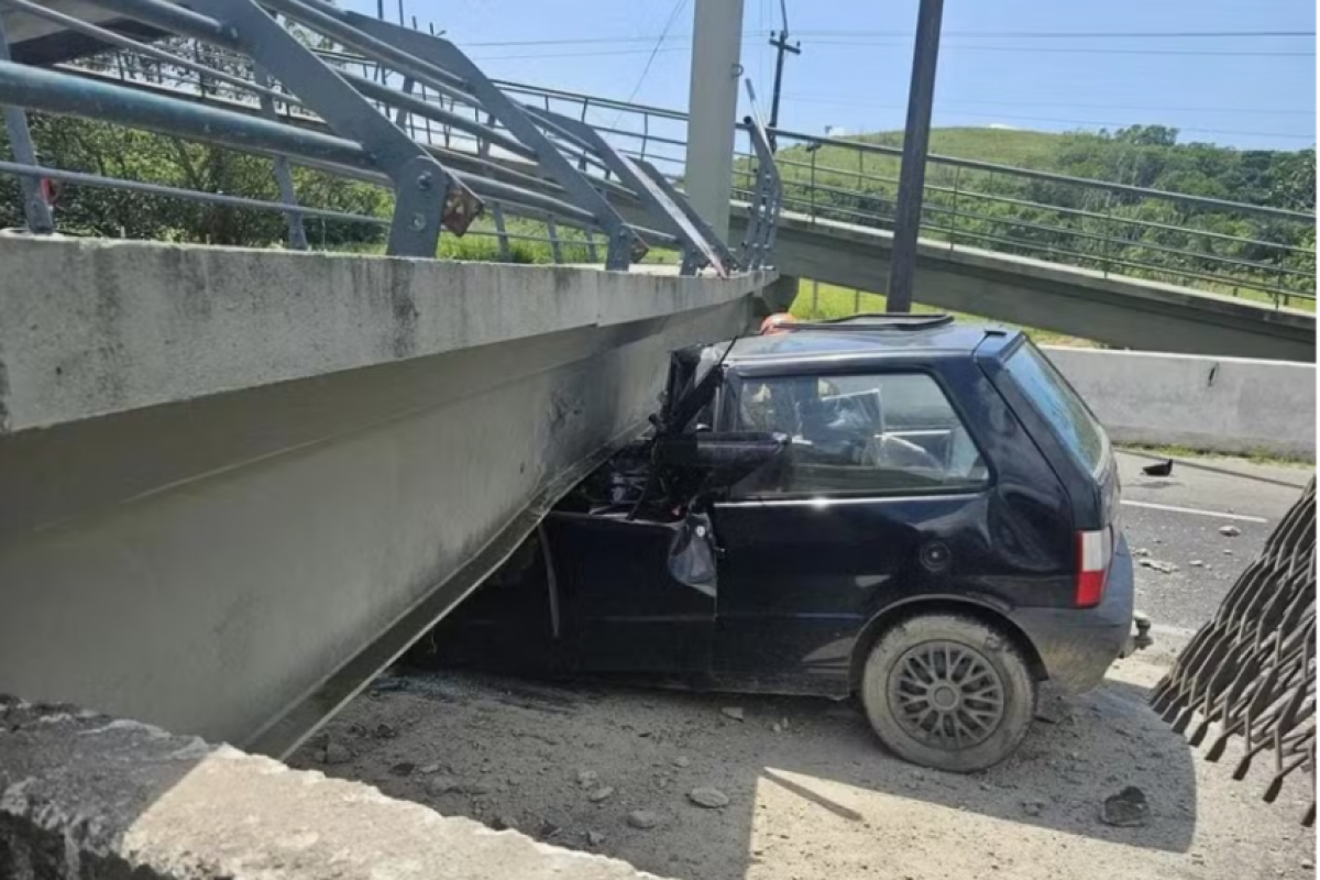 Um motorista morreu na manhã desta quarta-feira (19) depois que uma passarela desabou sobre o carro dele na BR-116, em Guapimirim, na Região Metropolitana do Rio de Janeiro.