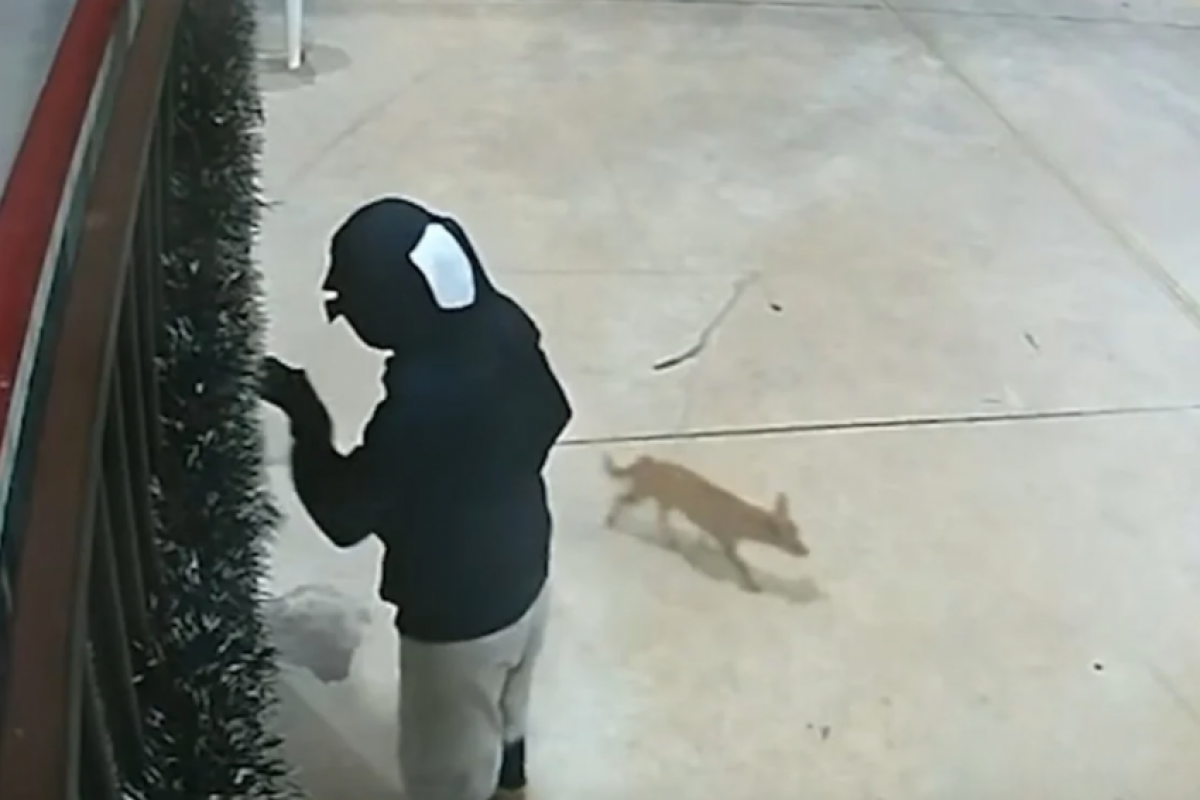 Imagens de câmeras de segurança registraram o assalto e mostraram o autor fugindo a pé, acompanhado do animal.