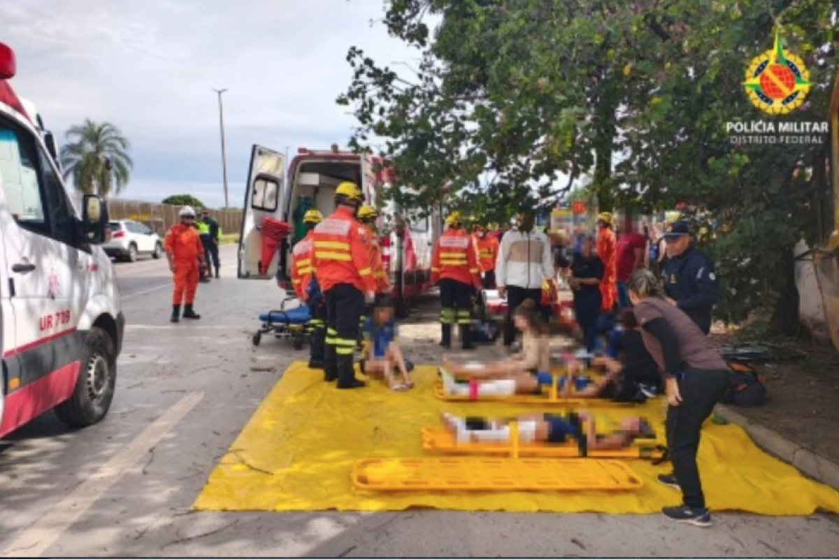 Um ônibus escolar com 19 ocupantes bateu numa árvore e, em seguida, numa passarela na manhã deste sábado (7), na Epia Sul, nas proximidades da Candangolândia, no Distrito Federal. O acidente aconteceu às 8h30 e deixou múltiplas vítimas, sem registro de mortes, informou o portal Metrópoles.
