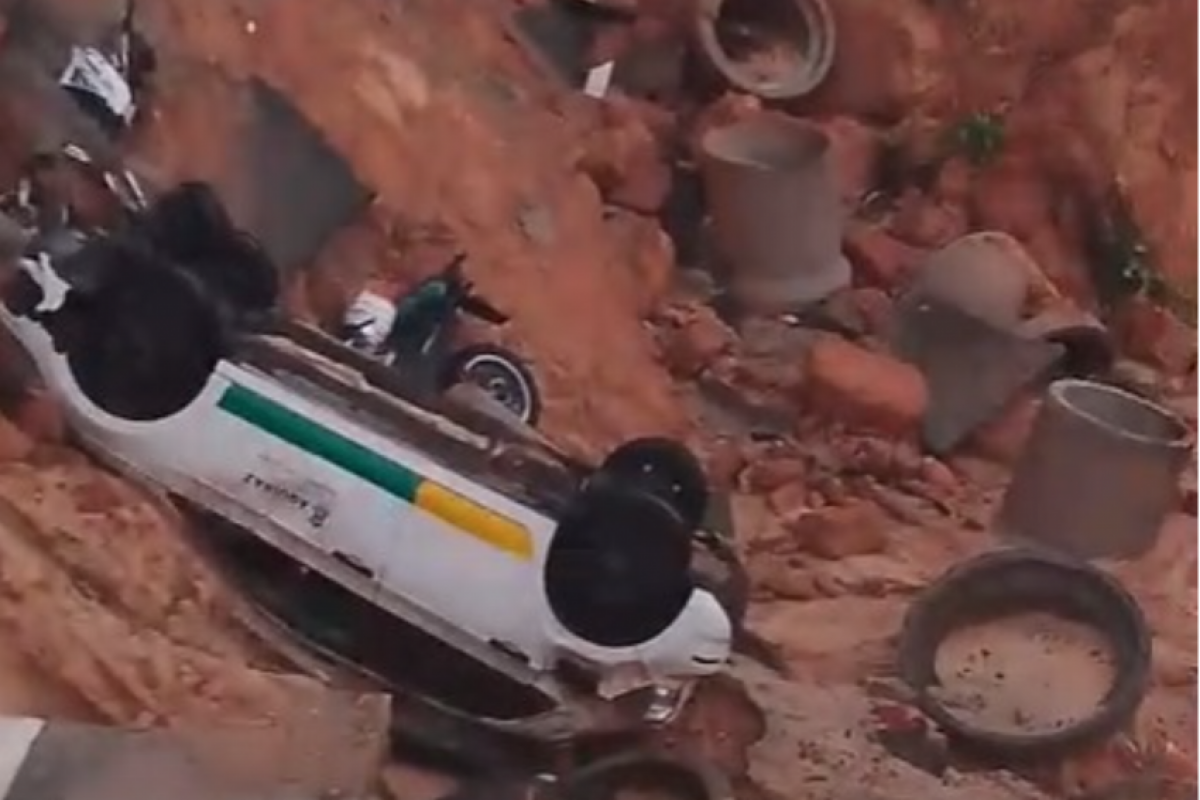 O caso aconteceu no trecho que liga Fortaleza ao município de Eusébio, no Ceará. Um carro da prefeitura de Aquiraz e uma motocicleta foram surpreendidos quando a pista cedeu.