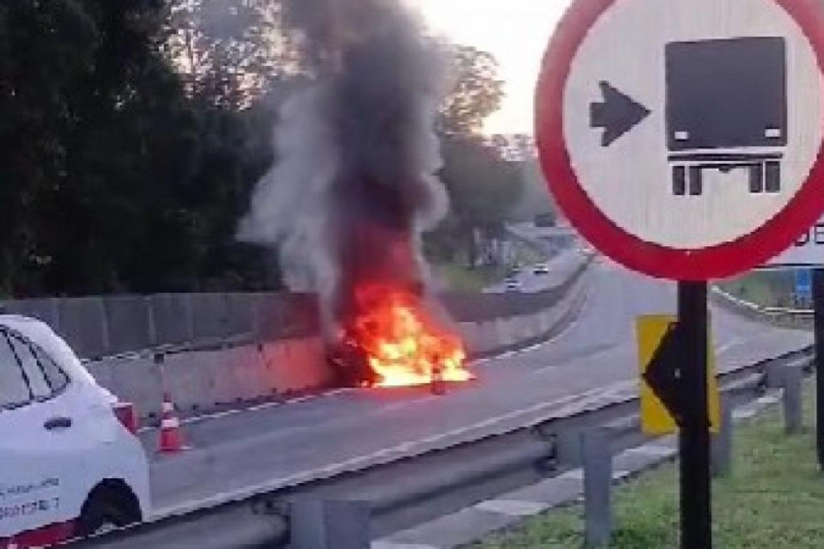 Veículo pega fogo na Rodovia Oswaldo Cruz, em Ubatuba
