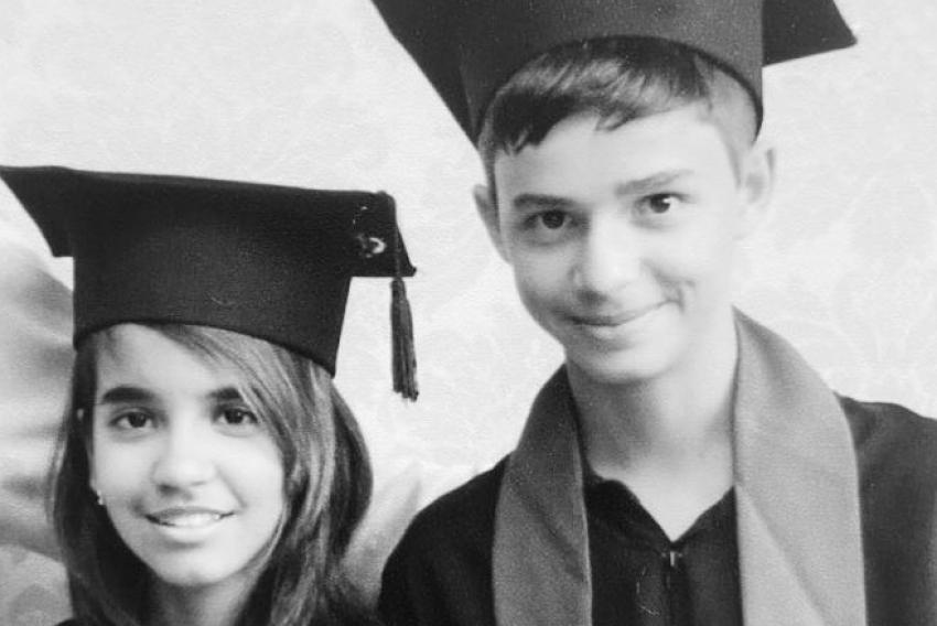 Isabella da Silva Alves e Leonardo do Prado Moreno, melhores amigos em registro de formatura