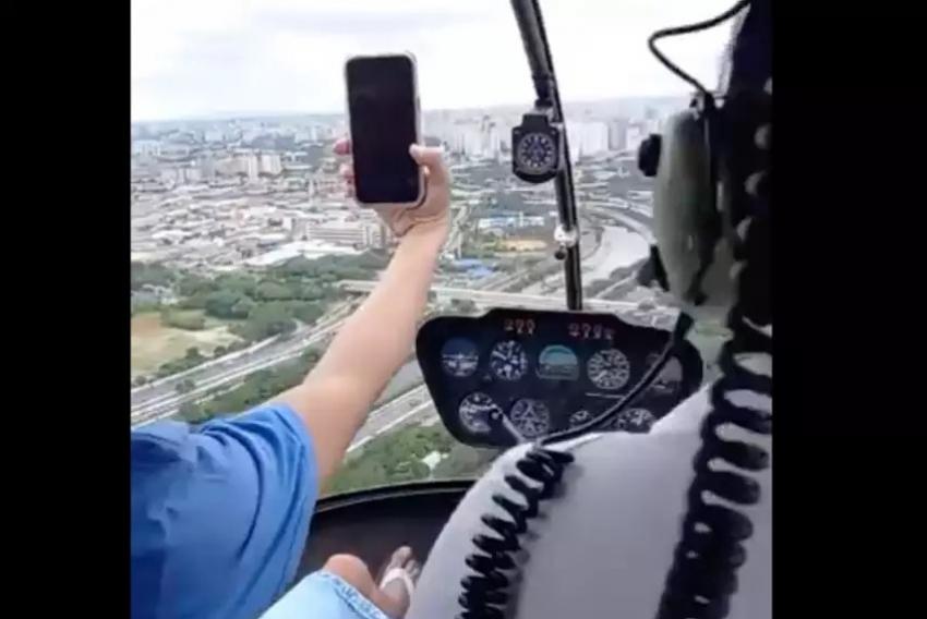 Imagem do vídeo feito de dentro do helicóptero que desapareceu na região