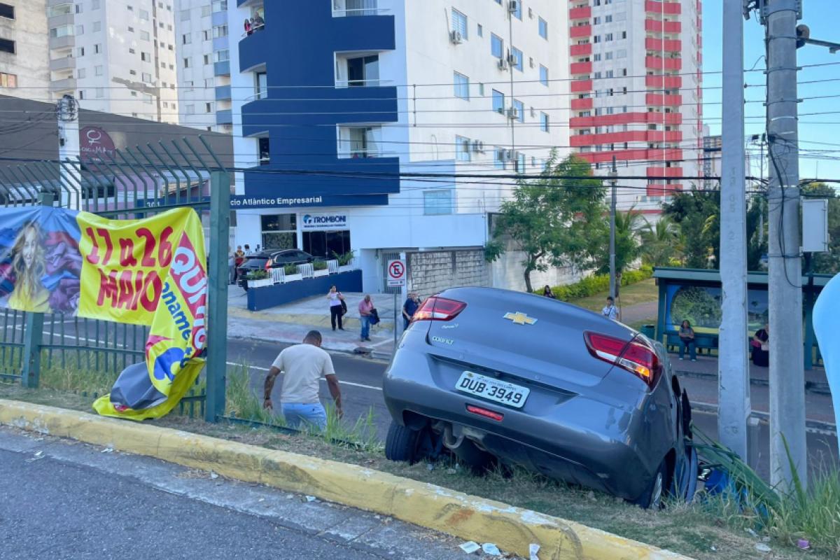 O carro ficou destruído e as grades por pouco não entraram no carro. O Cobalt ficou pendurado e só parou quando bateu em um poste.