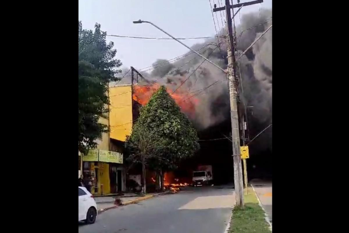 O fogo começou num espaço ao lado da loja, que serviria de depósito, e se alastrou para todo o estabelecimento, que ocupa um grande imóvel na Avenida Padroeira do Brasil, principal ligação entre Aparecida e Guaratinguetá.