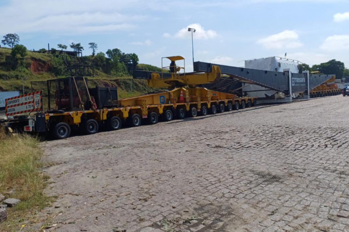 A carga tem 588t, 5,59 metros de altura, 6,7m de largura, 92,43m de comprimento e 40 eixos. Nesta segunda, a carga provocou congestionamento de mais de 10 km na Via Dutra entre Caçapava e Taubaté.