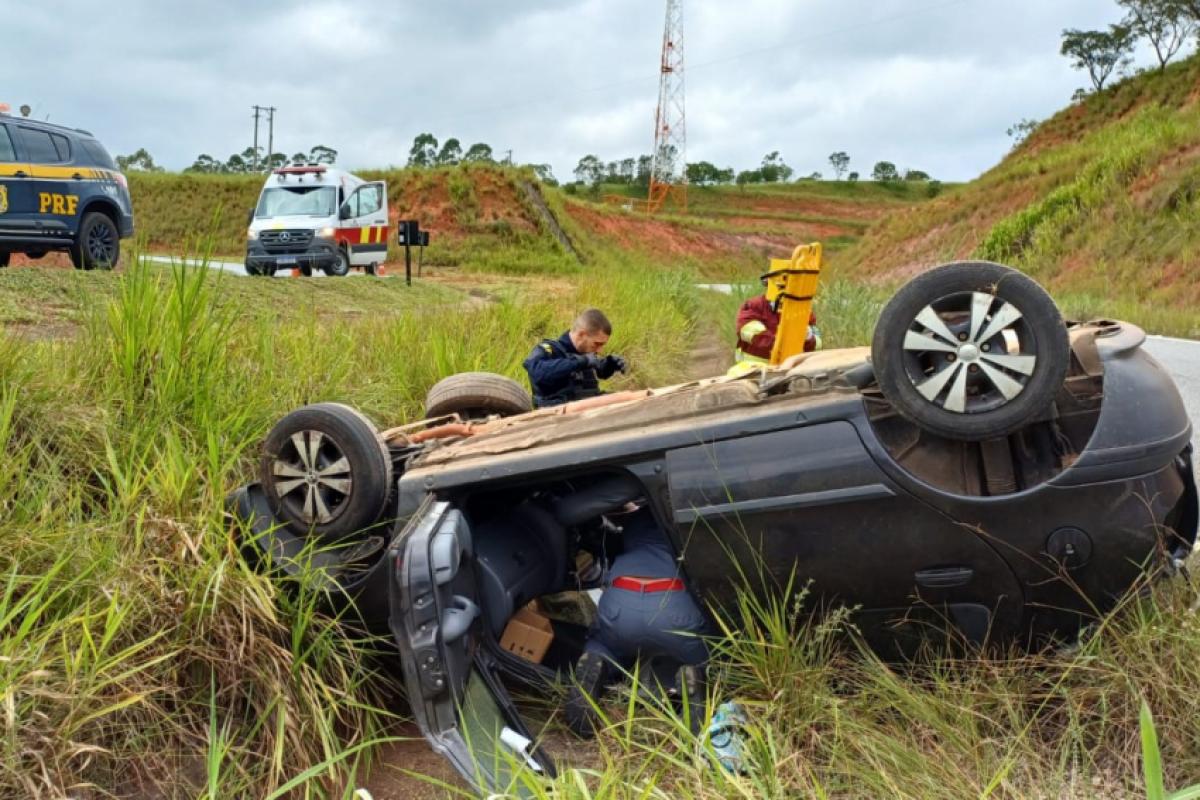 Ao chegar rapidamente ao local, os agentes encontraram o veículo capotado e com as rodas para cima. A jovem condutora estava inconsciente no interior do carro. A equipe prestou os primeiros atendimentos, garantindo a segurança da vítima até a chegada do resgate.