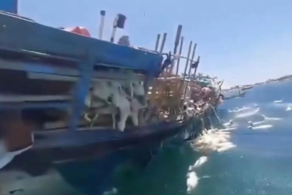 Navio com ovelhas naufraga e pescadores tentam resgatar animais