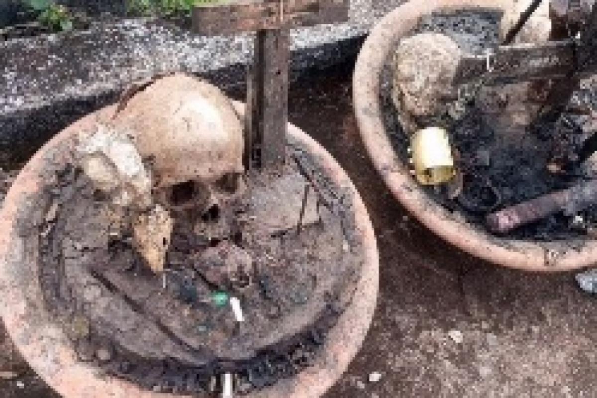 Altar macabro: crânio humano e de animal encontrados no cemitério