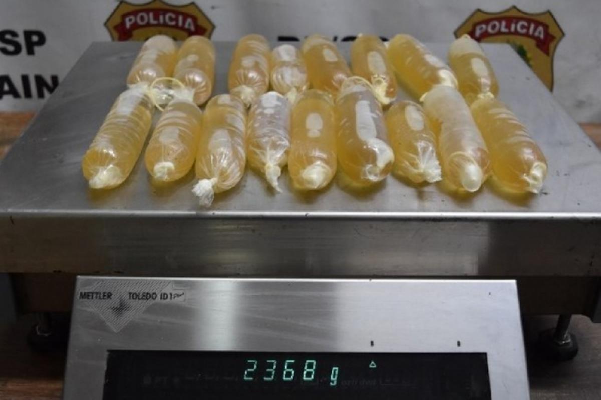 A PF (Polícia Federal) prendeu, na quinta-feira (15), uma mulher que transportava cocaína líquida em um voo internacional. A droga estava acondicionada em preservativos costurados ao sutiã que ela usava.