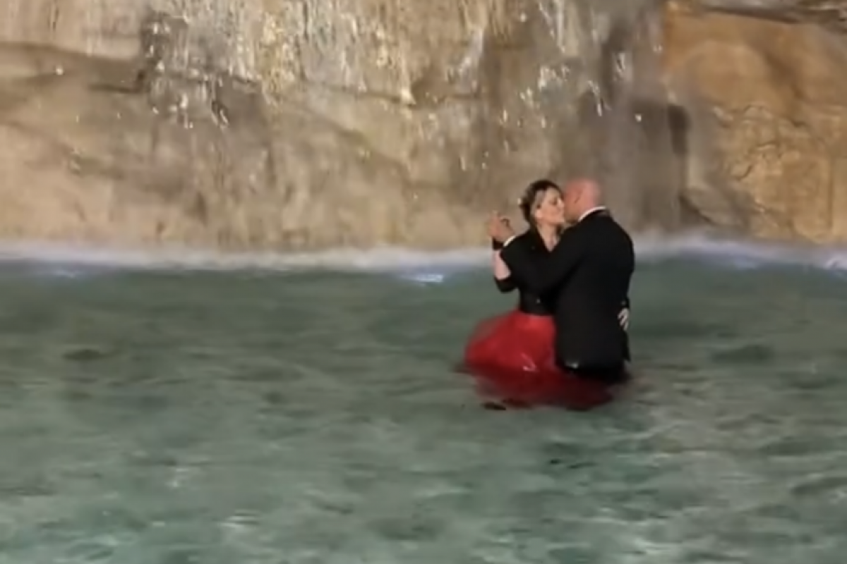 Em uma cena que remete ao clássico filme A Doce Vida (1960), de Federico Fellini, um casal de recém-casados invadiu a Fontana di Trevi, em Roma, na madrugada do último dia 11, para dançar no monumento histórico.