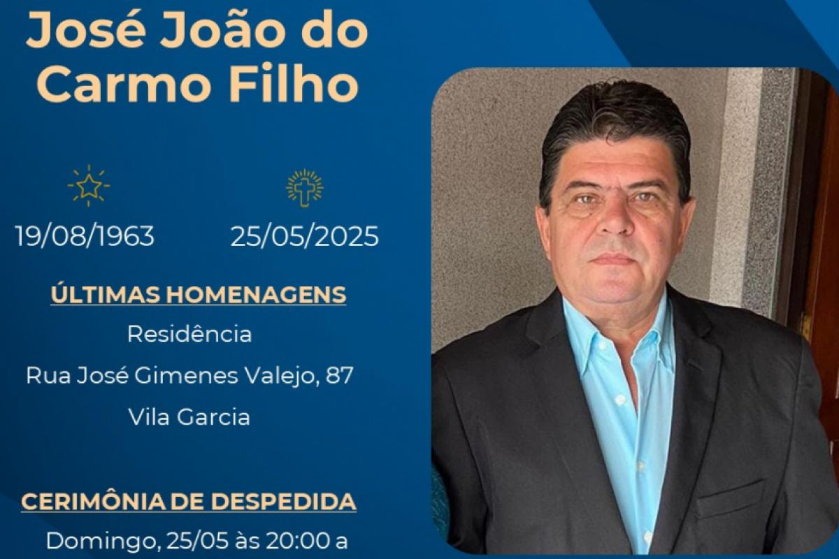 José João do Carmo Filho, 61 anos, morreu neste domingo (25), e será sepultado na manhã desta segunda-feira (26), às 8h, no Cemitério Memorial do Vale, em Jacareí.