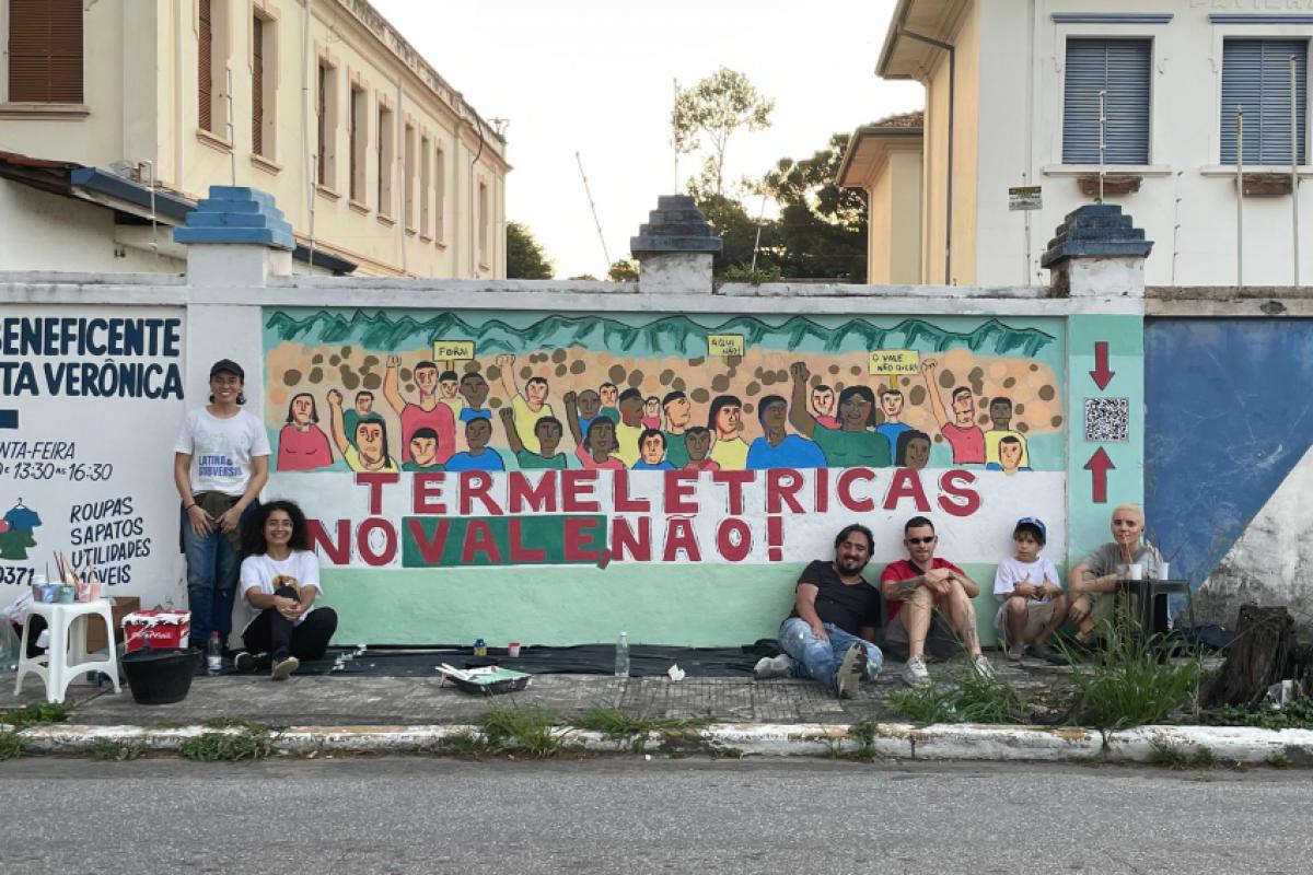 Um mural coletivo foi pintado na avenida Marechal Deodoro da Fonseca nesta semana, em Taubaté, manifestando oposição à instalação de termelétricas na região. A atividade foi conduzida pelo professor e artista plástico Aron Pereira, em muro cedido pelo Lar Escola Santa Verônica.