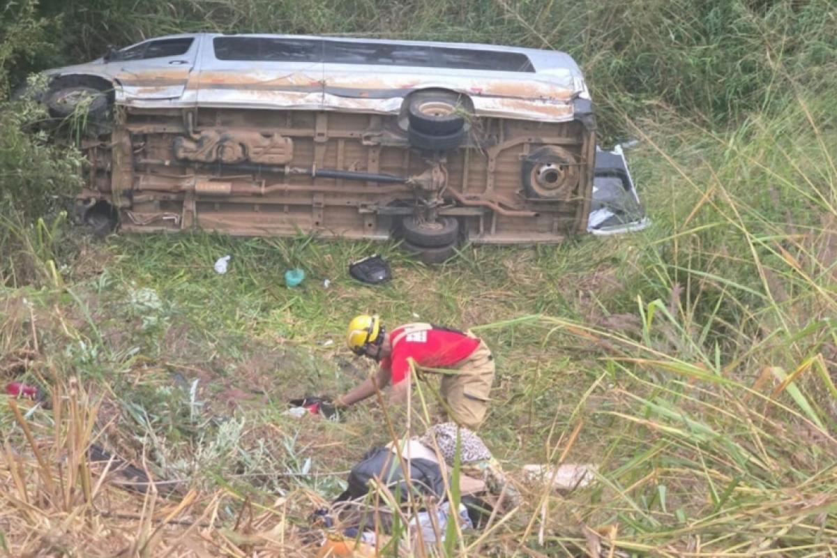 De acordo com informações do Corpo de Bombeiros, o motorista teria perdido o controle da direção do veículo. A van saiu da pista e caiu no talude.