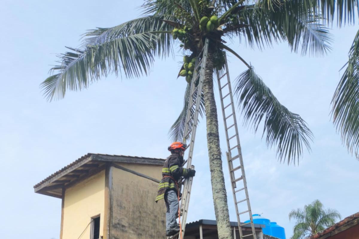 O Corpo de Bombeiros de São Sebastião foi acionado, na manhã desta quinta-feira (5), para realizar o resgate de um gato que havia subido em um coqueiro e não conseguia mais descer. O caso aconteceu no bairro Maresias, na costa sul da cidade.