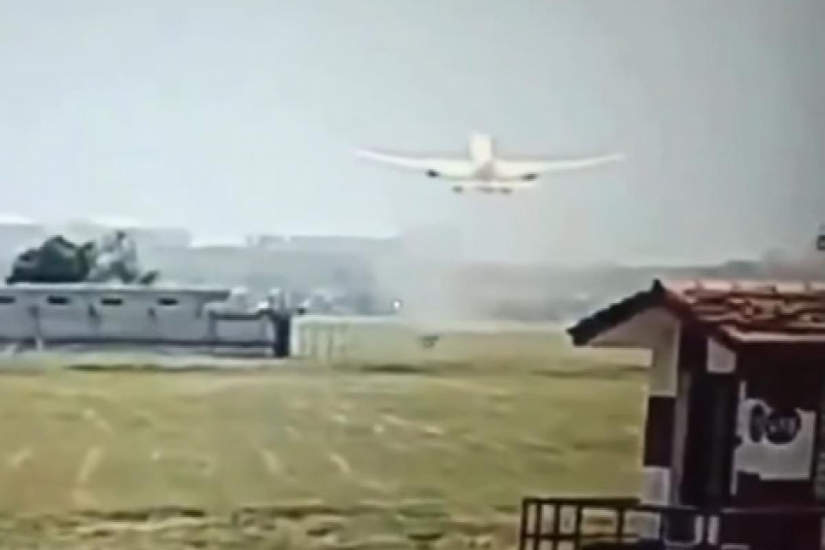 O veículo aparece saindo do aeroporto às 13h38 (5h08 no horário de Brasília). Ele trafega por alguns metros na pista do local e levanta voo em seguida. Nas imagens, é possível vê-lo ganhando altura durante alguns segundos.