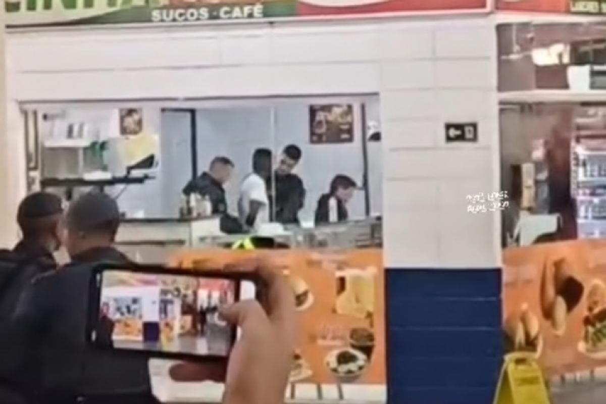 De acordo com testemunhas que gravaram as cenas, o suspeito primeiro tentou roubar uma loja de perfumes, quebrou o vidro da entrada, mas ao ver duas mulheres desistiu e partiu para a lanchonete.