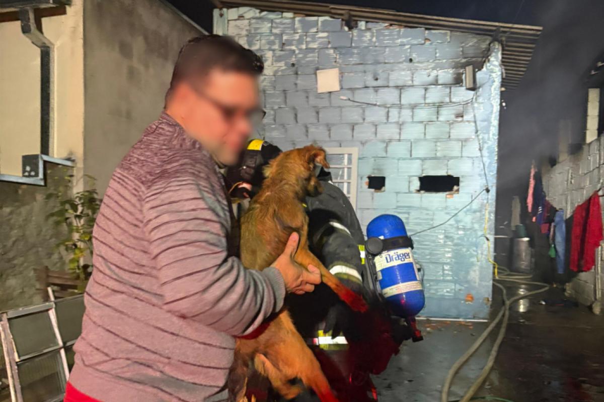 Ao chegarem ao local, as equipes encontraram o fogo ainda ativo e iniciaram imediatamente o combate às chamas. Durante a operação, oito cachorros que estavam no imóvel foram resgatados e entregues com segurança à proprietária.