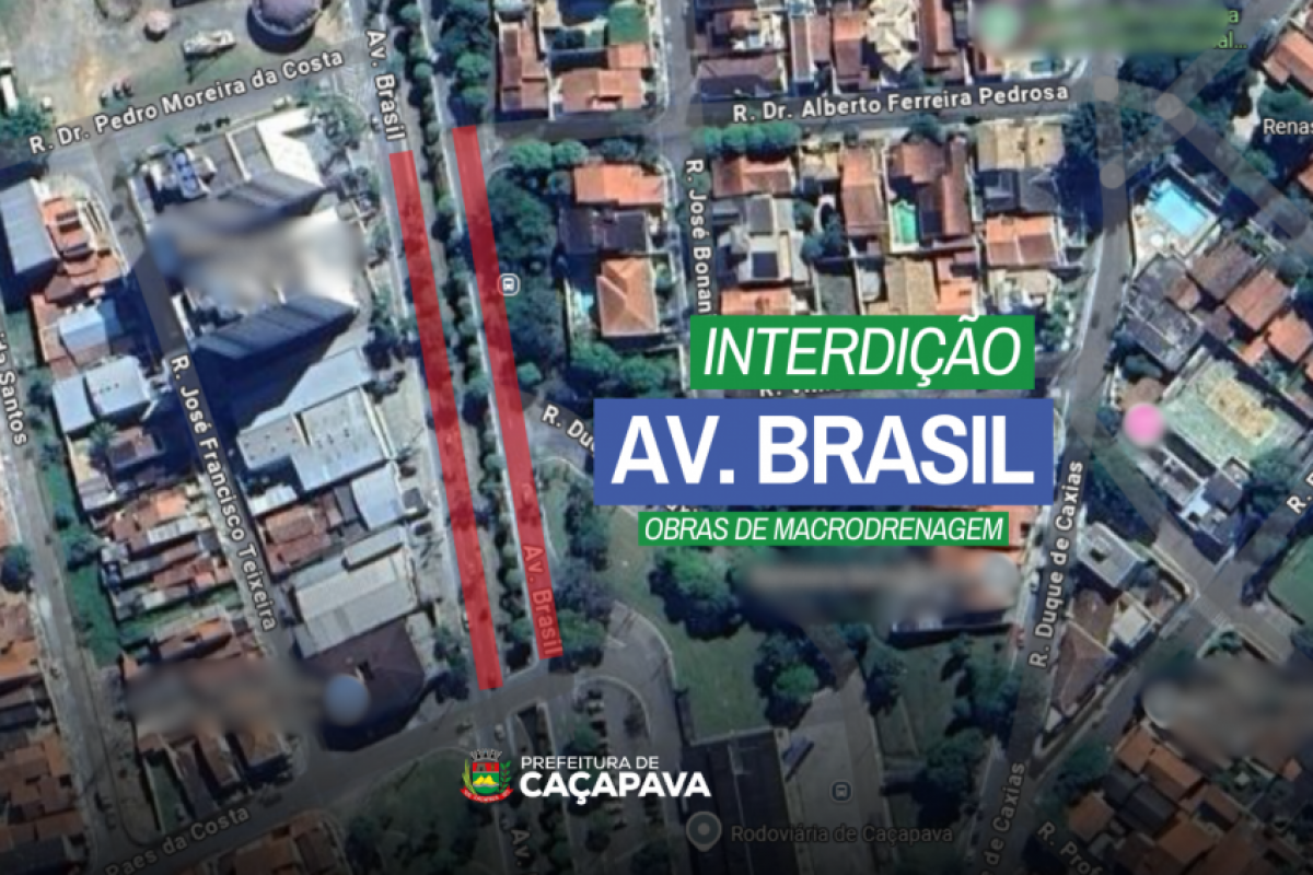 Uma nova etapa das obras de macrodrenagem da avenida Brasil, em Caçapava, começa nesta segunda-feira (25), com interdições e desvios de rotas no transporte público.