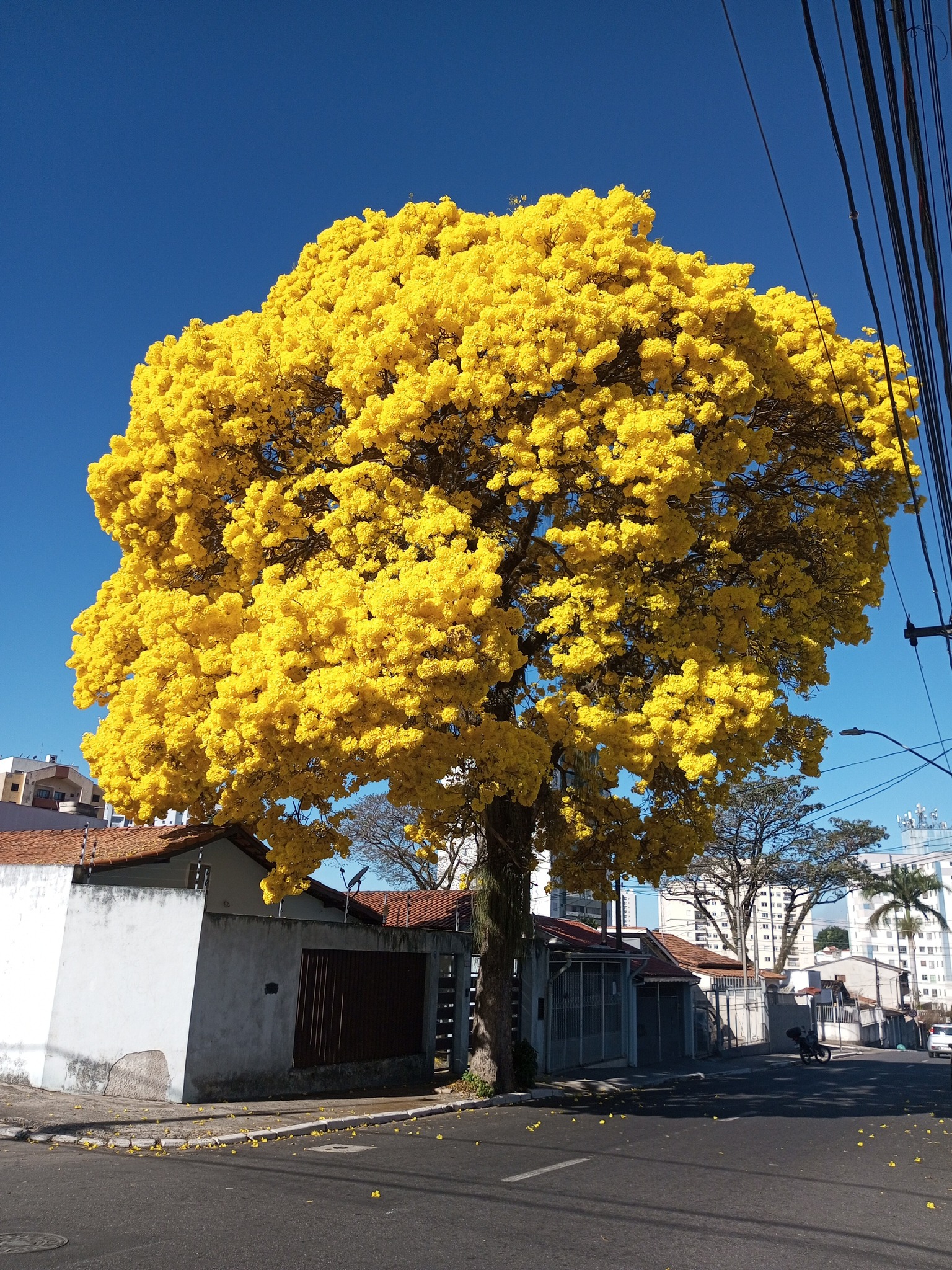 Desse total, o ipê amarelo é a maioria, com cerca de 8.000 indivíduos na cidade. As outras 5.000 árvores são de ipês de cores variadas, como rosa, branco e roxa.