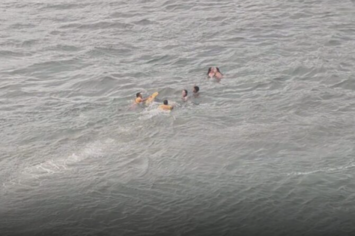 Diante da situação de risco iminente, os guarda-vidas foram lançados ao mar.