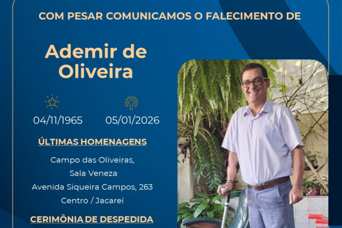 Ademir de Oliveira, 60 anos, morreu em Jacareí nesta última segunda-feira (5). E o sepultamento aconteceu na tarde desta terça (6), no Cemitério Jardim da Paz do Parque Santo Antônio.