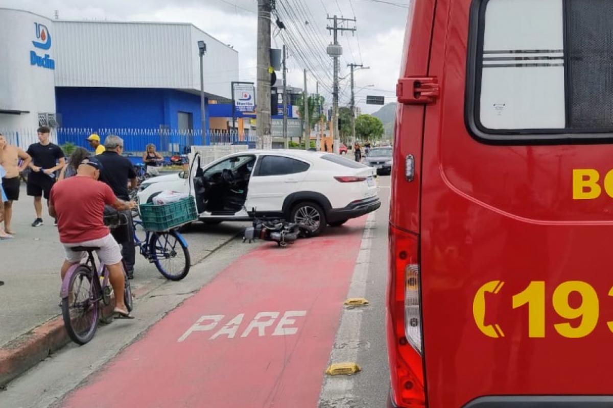 De acordo com informações do Corpo de Bombeiros, o acidente envolveu um automóvel e um ciclomotor — uma bicicleta motorizada — conduzido pela vítima, moradora do município. Com o impacto, a jovem sofreu escoriações pelo corpo e um corte na região do rosto.