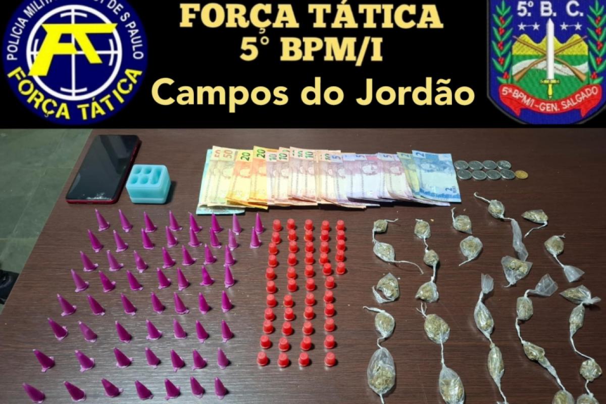 Um homem foi preso em flagrante por tráfico de drogas em Campos do Jordão na noite de terça-feira (6).