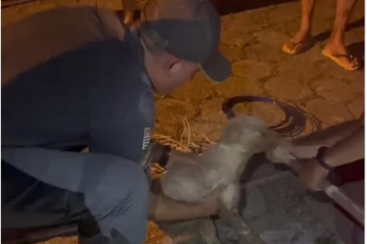 Após diversas tentativas, foi necessário improvisar um instrumento longo com laço na extremidade para alcançar o animal. Os materiais utilizados foram cedidos por moradores da região, demonstrando solidariedade e união da comunidade.