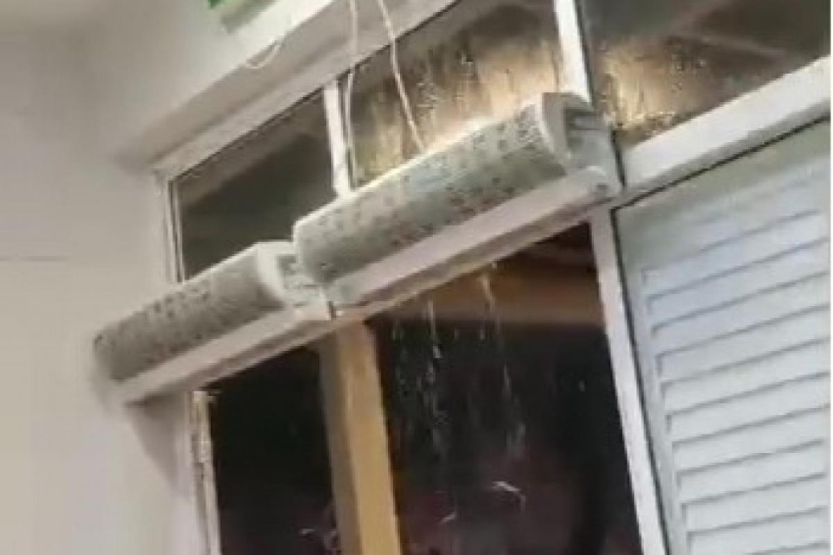 Imagens gravadas por pacientes e acompanhantes mostram a entrada de água em áreas internas do hospital, tanto pelo sistema de ar-condicionado quanto por pontos de infiltração. Os registros evidenciam a intensidade do temporal que atingiu o município.