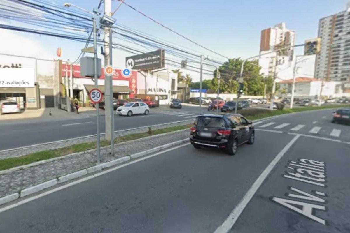 O radar campeão fica logo depois de uma escola na Avenida Itália, local de grande movimento, no sentido bairro x centro.