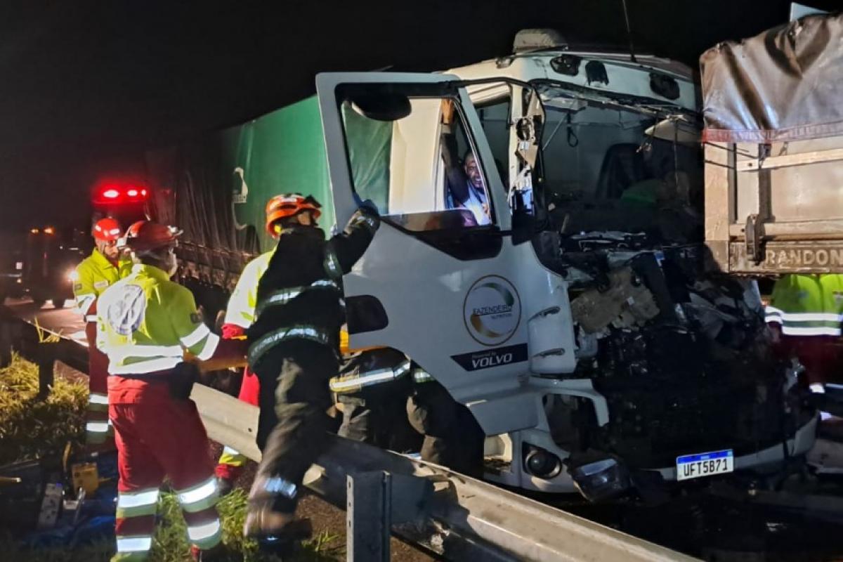 No caminhão que colidiu por trás, havia três ocupantes. O motorista, de 44 anos, ficou preso às ferragens e teve o óbito constatado ainda no local por médico da concessionária responsável pela rodovia.