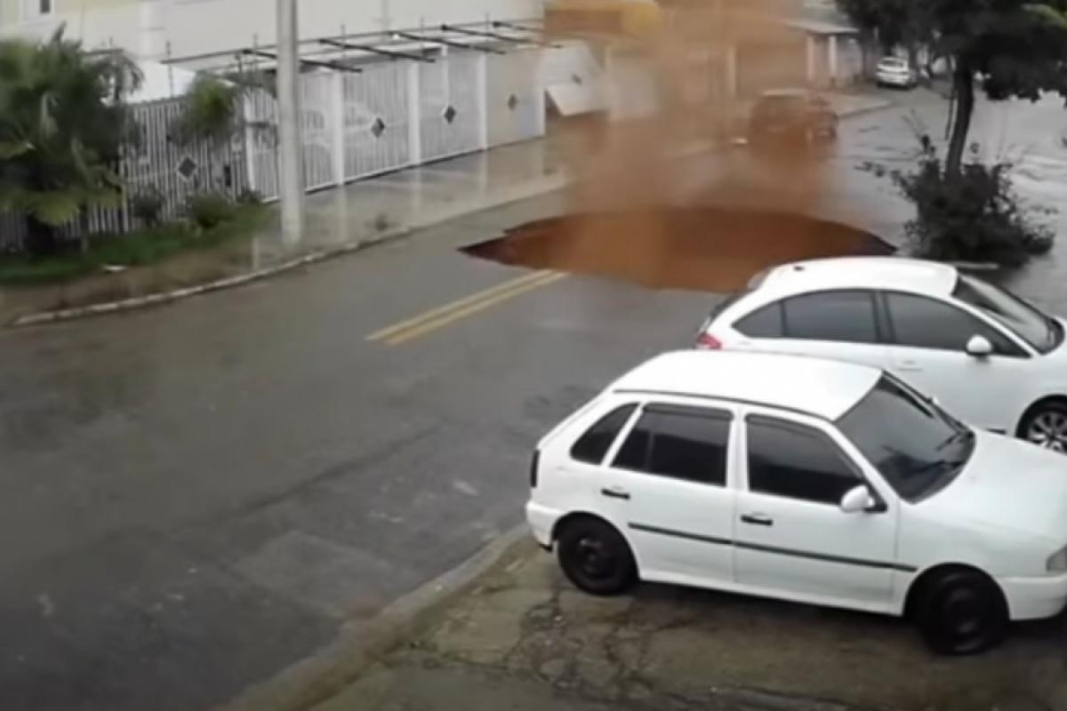 Um vídeo mostra o momento exato em que uma nova cratera se abriu na rua Felisbina de Souza Machado, no bairro Jardim Imperial, na zona sul de São José dos Campos. As imagens foram registradas no último fim de semana e revelam a força do desabamento.