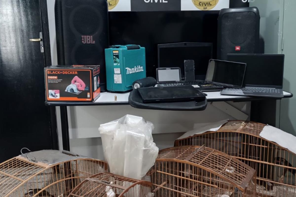 Um homem investigado pela Polícia Civil por crimes de furto na região oeste de São José dos Campos foi preso nesta terça-feira (3), no Centro de Jacareí. Os policiais cumpriram mandado de busca e apreensão no endereço, apreendendo equipamentos e bens furtados, munições e aves silvestres.