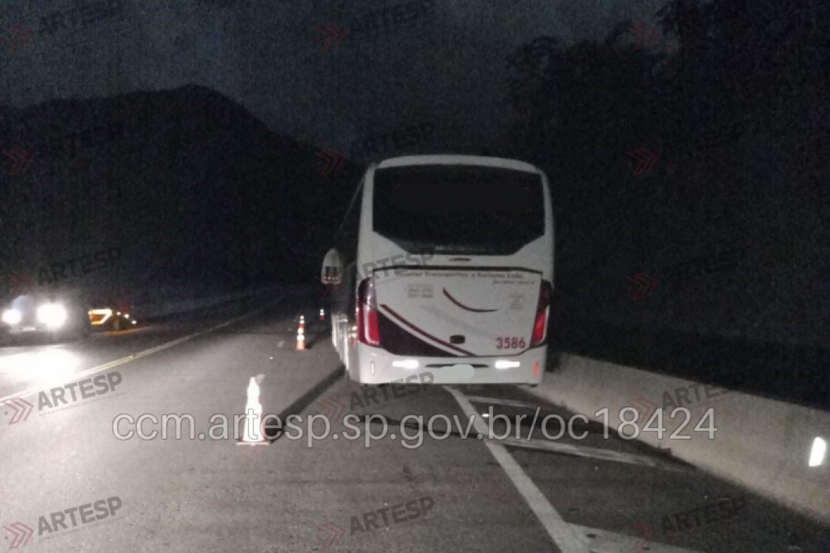 Um ônibus de uma empresa de transportes, que levava 47 passageiros de Caraguatatuba a Ilhabela, sofreu uma pane mecânica no sentido leste da SPI 097-055, na altura do km 2.500 dos Contornos, em Caraguatatuba.