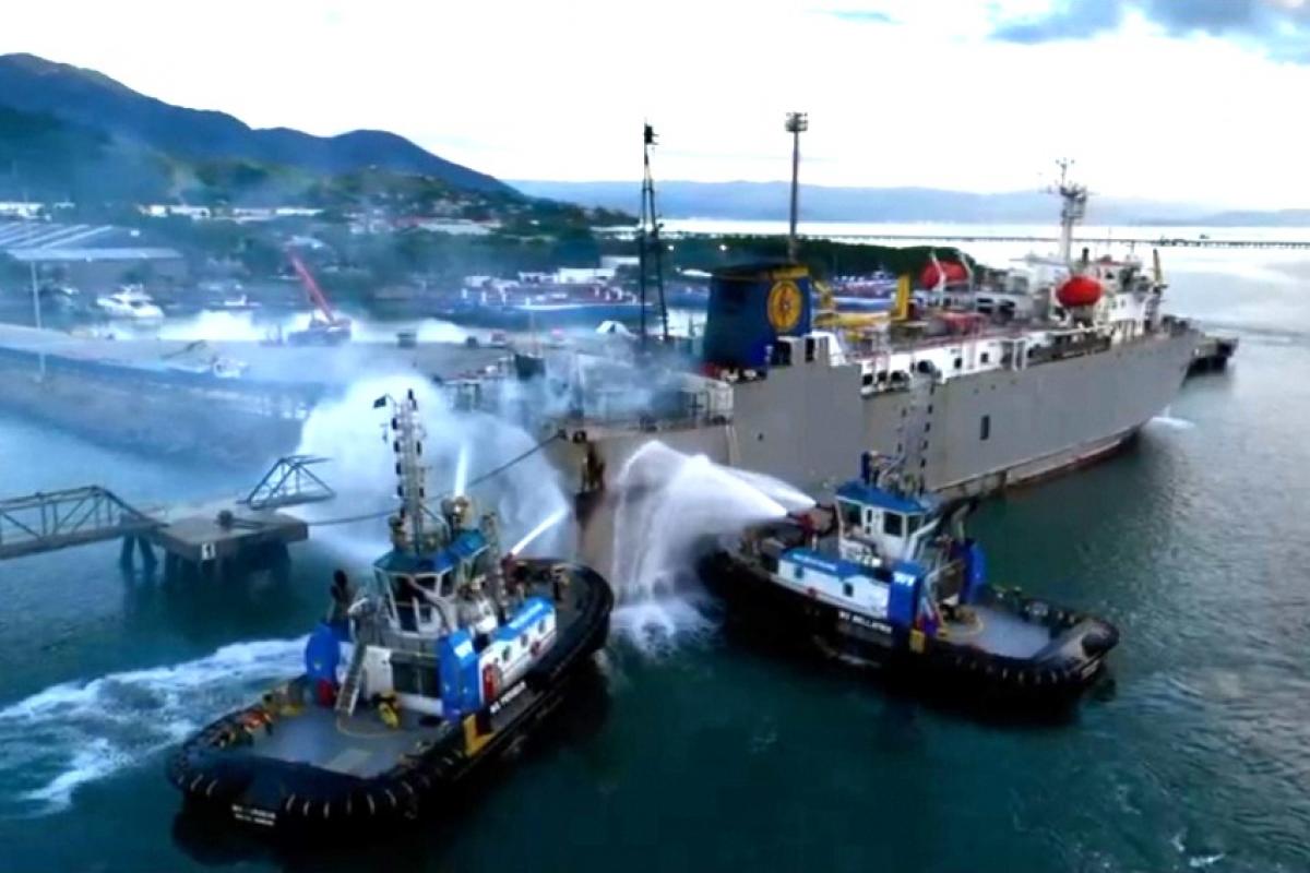A tripulação do navio iniciou o combate às chamas, mas sem equipamentos de proteção, eles tiveram que aguardar a chegada do Corpo de Bombeiros, que controlou o fogo usando hidrante e caminhões pipa.