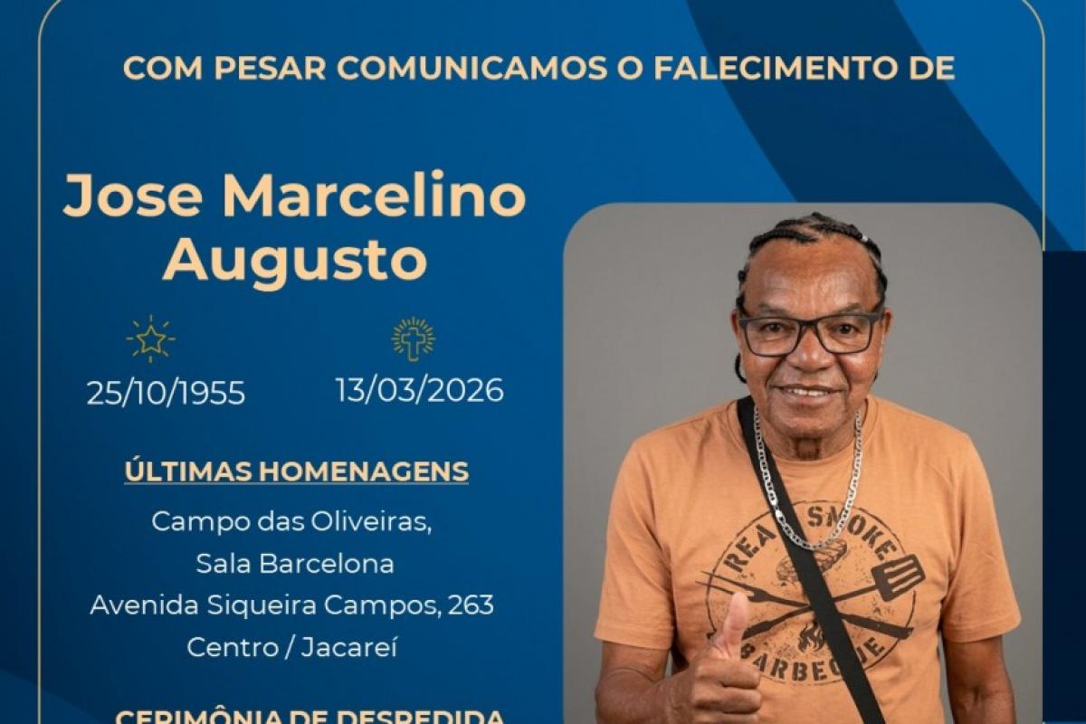 José Marcelino Augusto morreu em Jacareí aos 70 anos, nesta sexta-feira (13). Ele foi sepultado no mesmo dia, à tarde, no Cemitério Jardim da Paz, no Parque Santo Antônio.