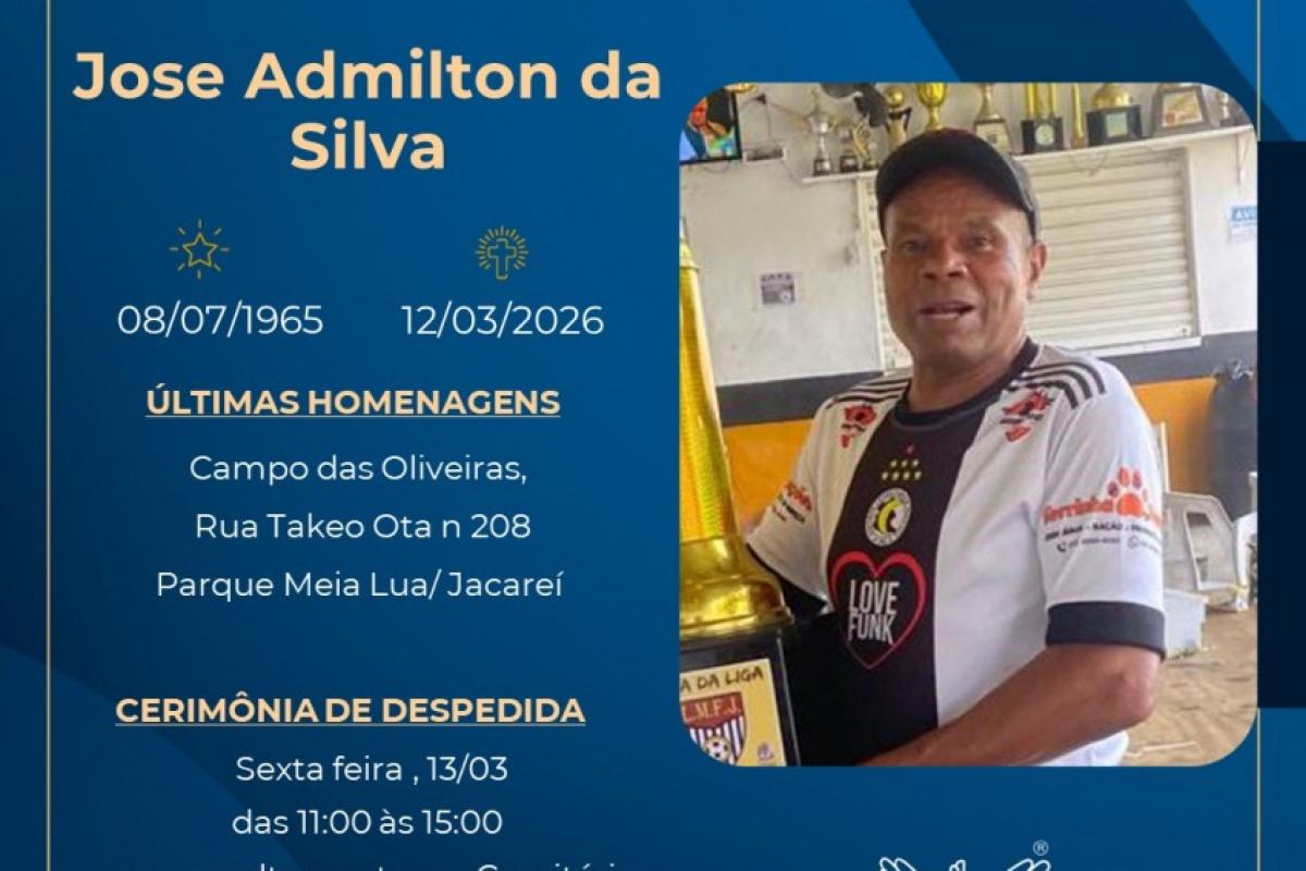José Admilton da Silva morreu em Jacareí nesta última quinta-feira (12), aos 60 anos. Ele foi enterrado na tarde desta sexta (13), no Cemitério Jardim da Paz, no Parque Santo Antônio.