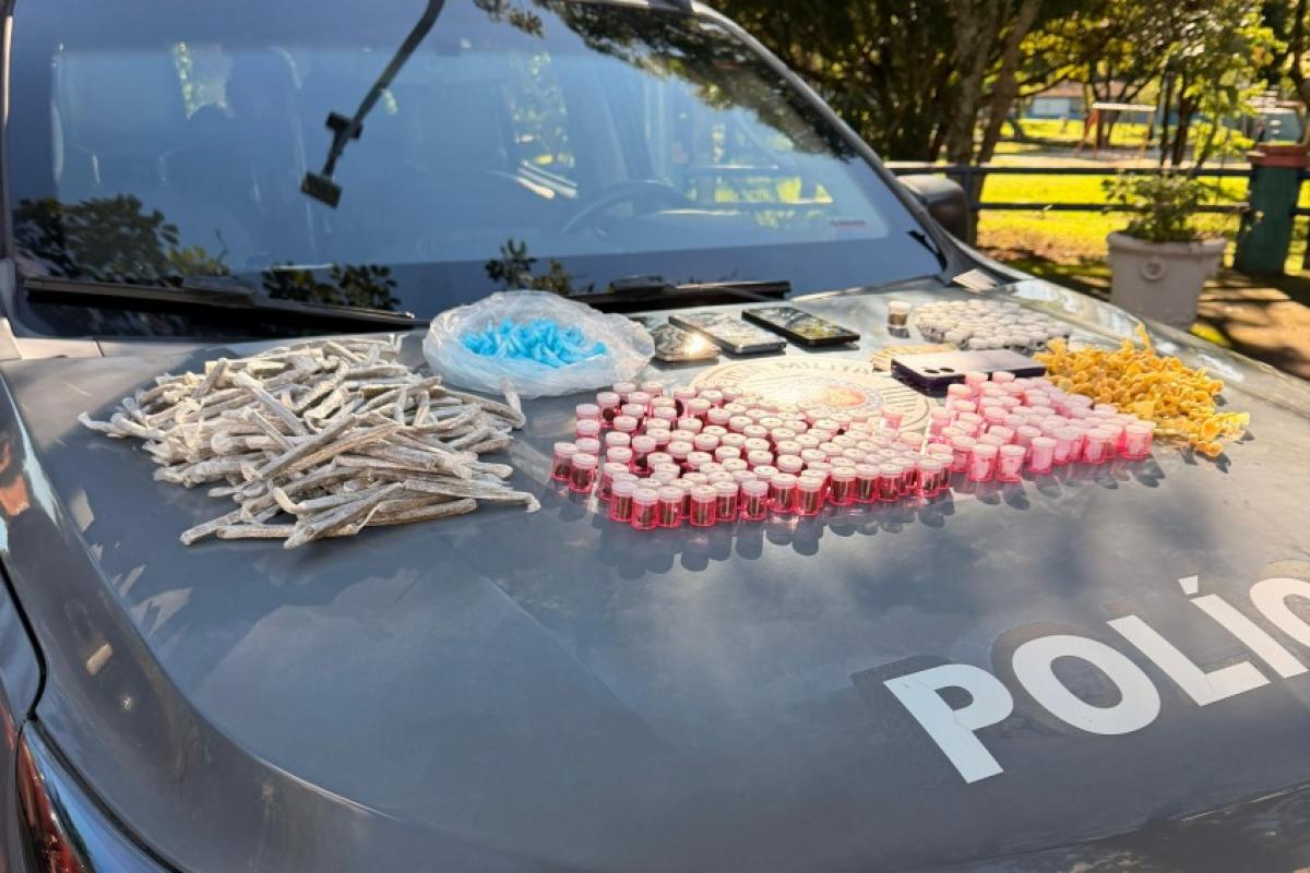 A equipe patrulhava o bairro por volta das 15h, quando avistou os três suspeitos em um veículo em prática de tráfico, segundo a PM. Em abordagem ao veículo, foram localizados 1,9 kg de drogas, distribuídos em 0,250 kg de cocaína, 0,150 kg de crack e 1,5 kg de maconha.