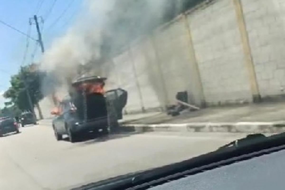 Um veículo pegou fogo no final da manhã desta segunda-feira (16) na Via Oeste, em São José dos Campos. O incêndio aconteceu na altura dos fundos do condomínio Colinas, uma das regiões mais movimentadas da cidade.