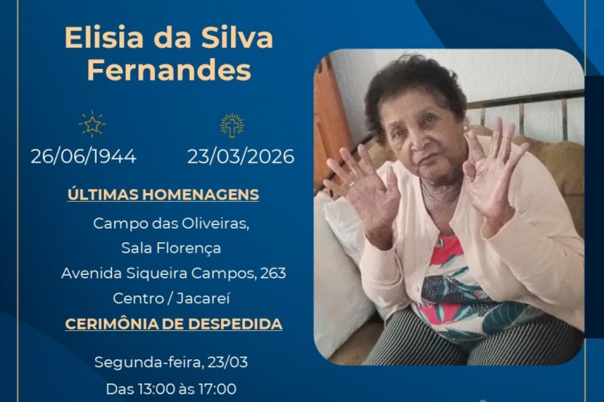 Elisia da Silva Fernandes, 81 anos, morreu em Jacareí nesta última segunda-feira (23). E a cerimônia de despedida aconteceu n final da tarde do mesmo dia, no Crematório Campo das Oliveira.