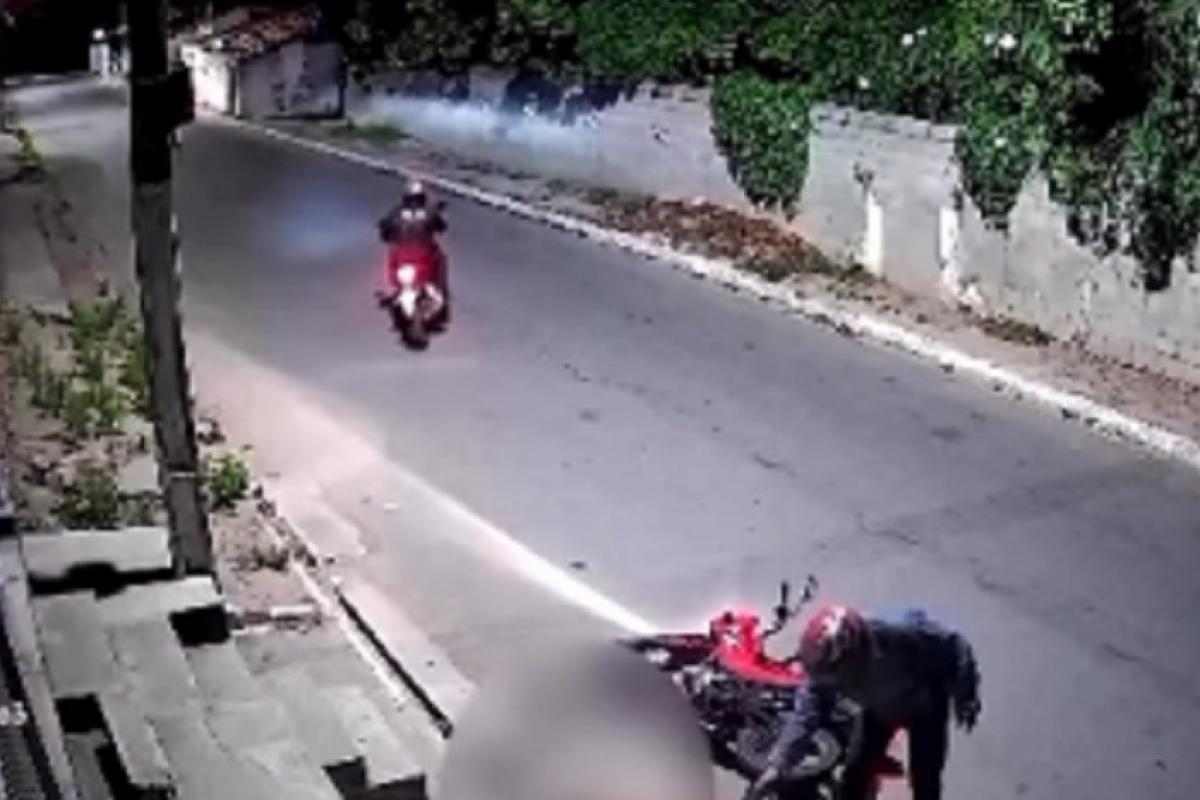 Uma câmera de monitoramento registrou o momento em que um homem foi assassinado a tiros na noite de quarta-feira (25). A vítima, de 35 anos, morreu no local após ser atingida pelos disparos.