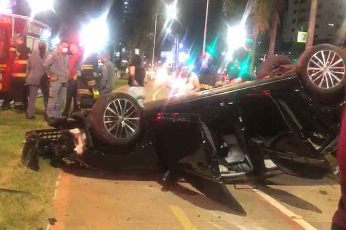 VÍDEO: Carro capota na Norte-Sul e deixa três feridos